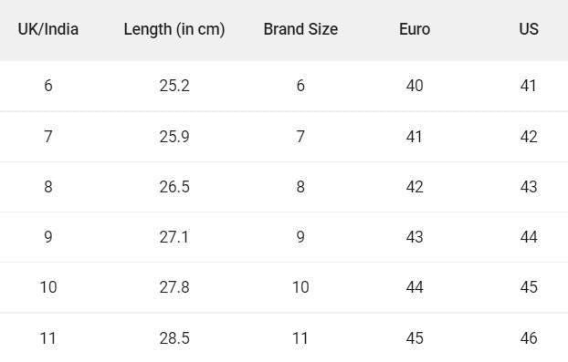 Sizes in CM: 25.2, 25.9, 26.5, 27.1, 27.8, 28.5